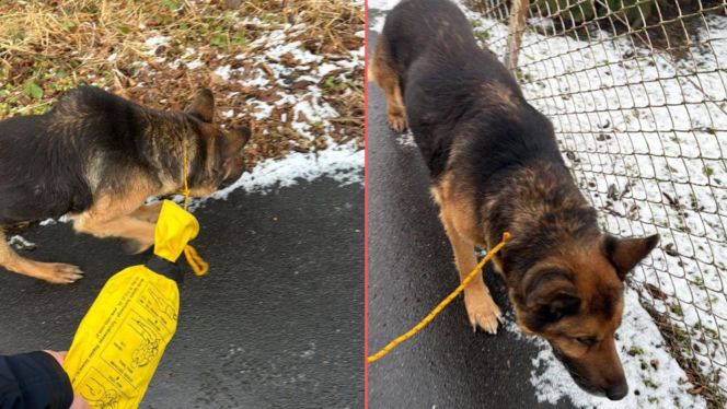 Pies zamarzał na środku drogi. Uratowali go w ostatniej chwili!