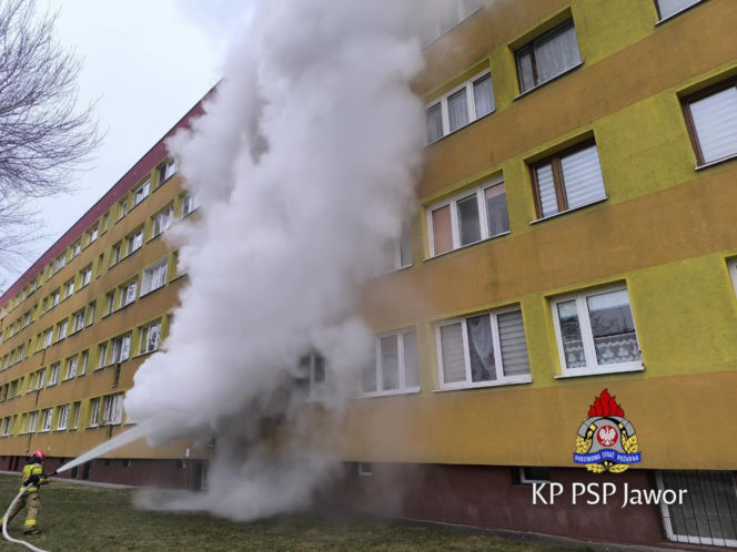 Pożar mieszkania w Jaworze. Nie żyje mężczyzna.